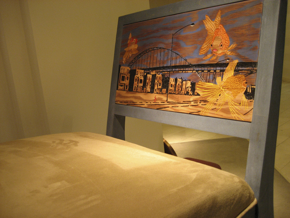 As I walked around the event I started taking shots of some of the work with my little canon camera and decided I would share them here. Where possible I've added the artist name and info. If you're the artist and would like a copy of the picture at higher rez just contact me and we'll get it to you. Obviously I didn't photograph everything, if you want to see more, almost all of the pieces are viewable at the Chair Affair Website.